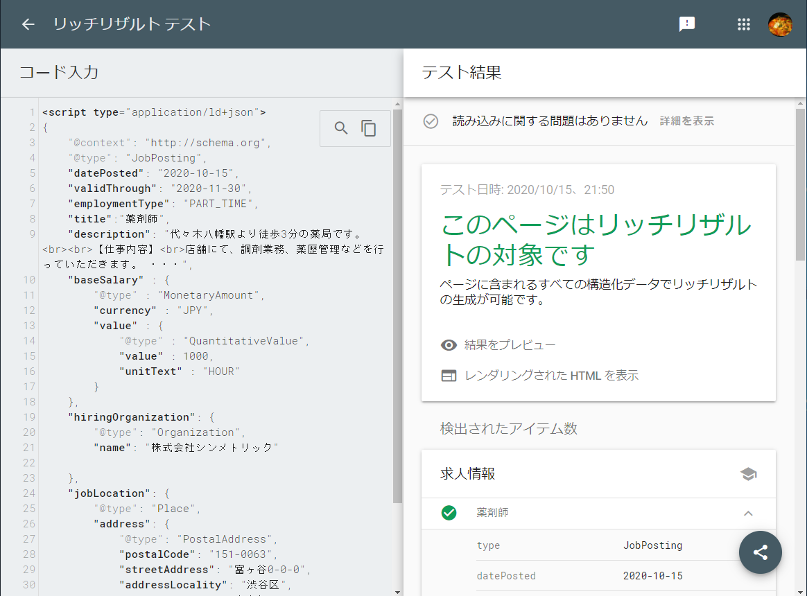 JobPosting構造化データのチェック方法