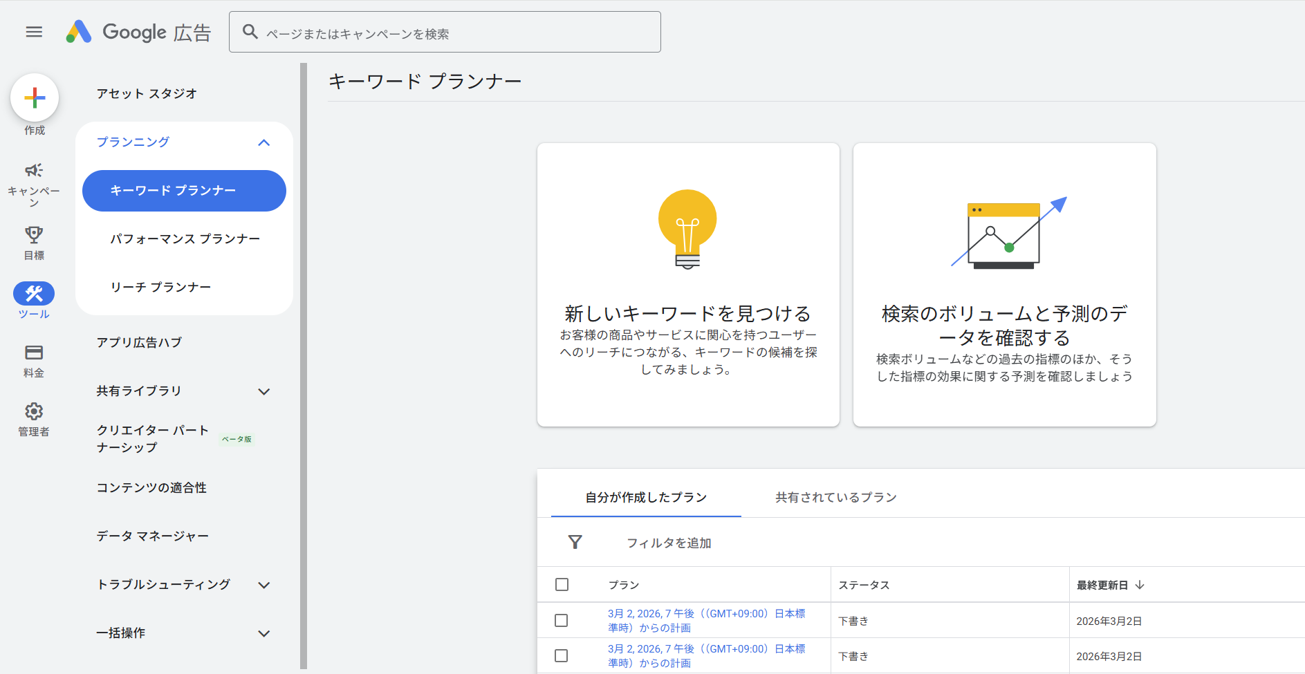 URLhttps://ads.google.com/intl/ja_jp/home/tools/keyword-planner/